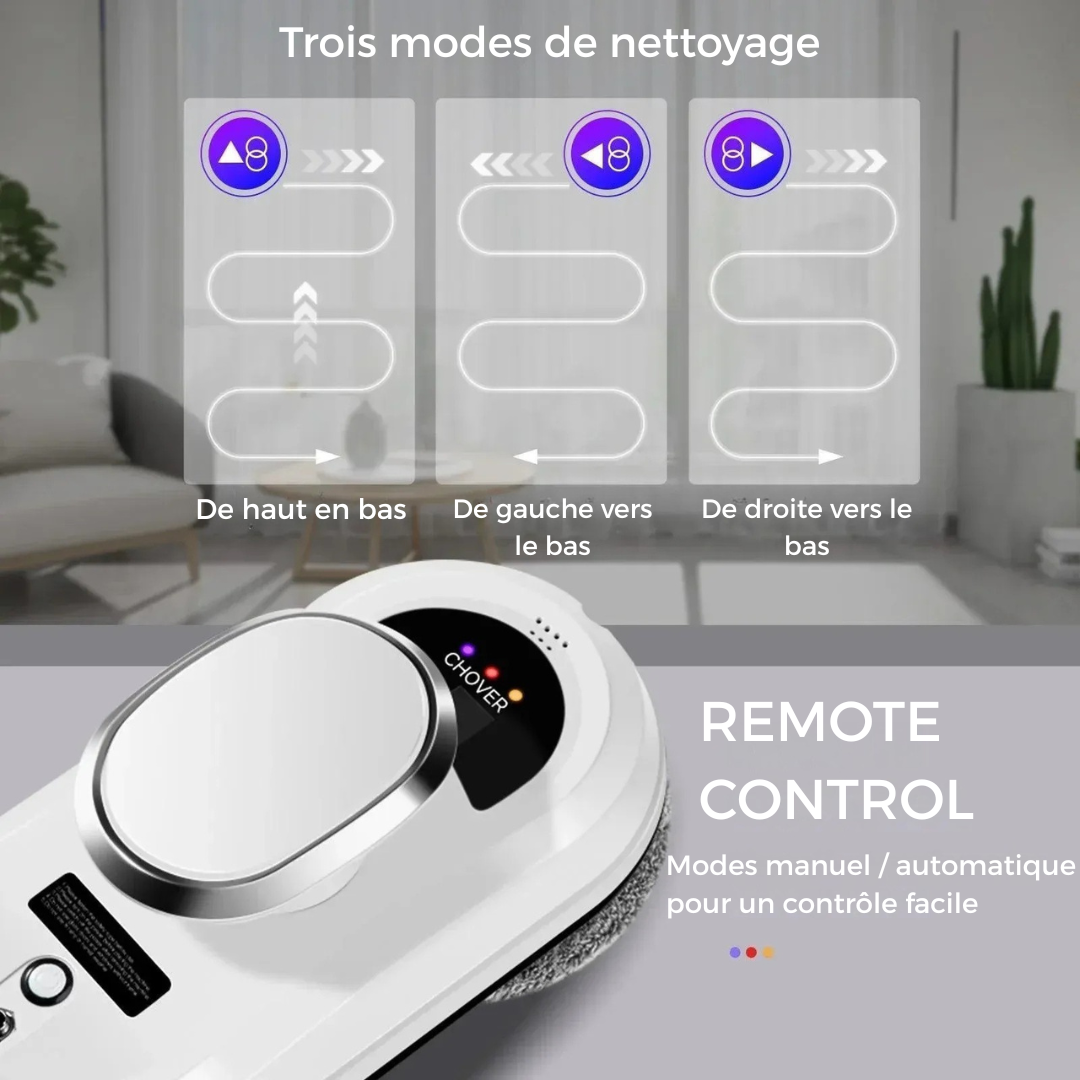 Avec ses 3 modes intelligents et son contrôle ultra-simple, ton robot s’adapte à ton rythme et fait briller tes vitres sans effort. Un geste, et tout devient plus propre, plus rapide, plus confortable — exactement comme tu l’as toujours voulu.