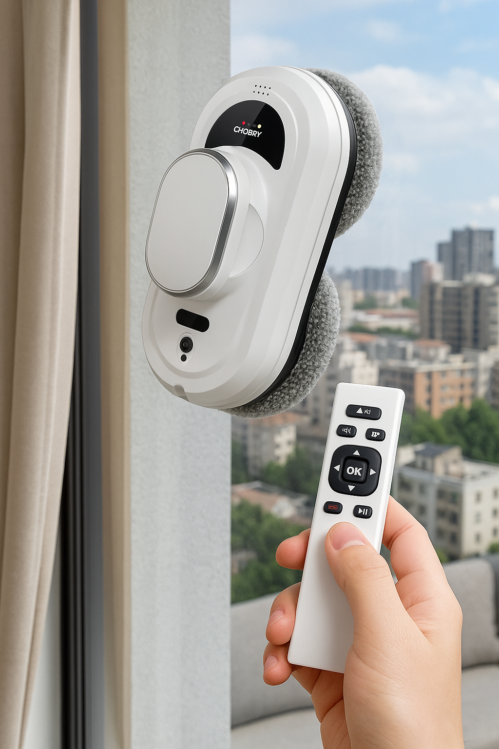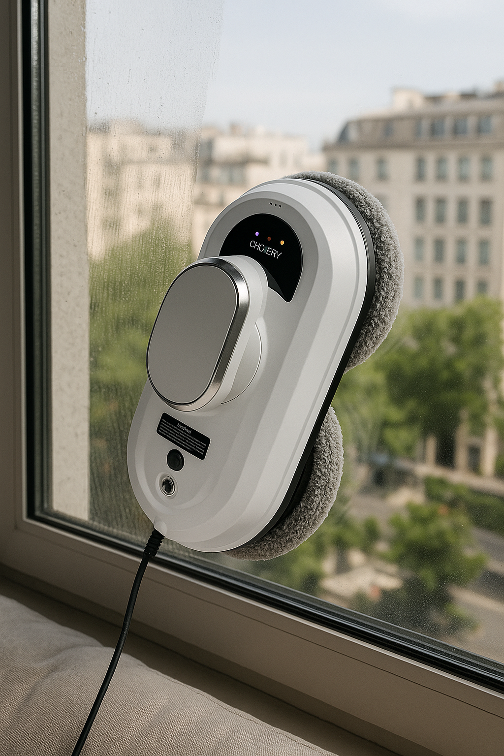 Robot lave-vitre automatique conçu pour le nettoyage de surfaces vitrées et lisses.